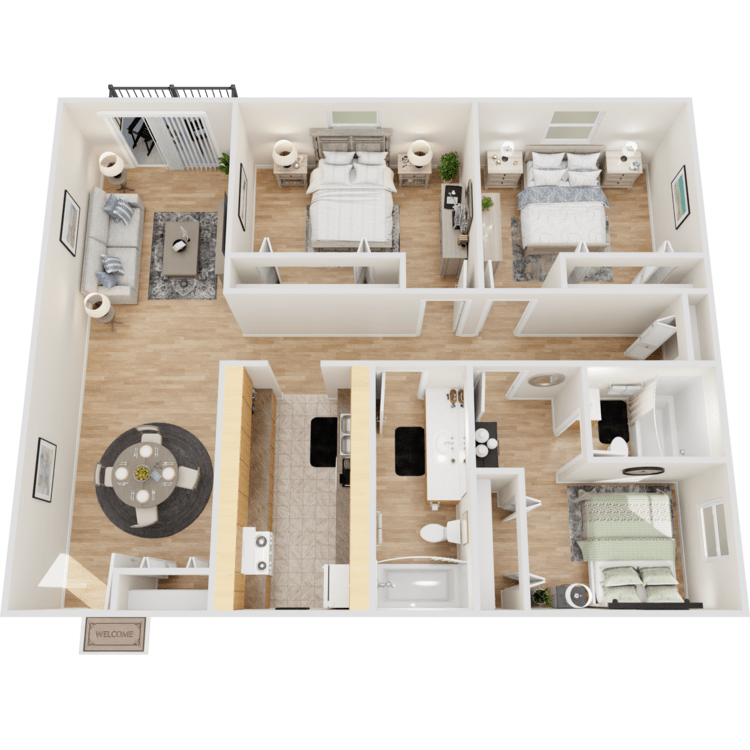Select your new home from our selection of pet-friendly one, two, or three-bedroom apartments for rent. Clean up easily after dinner with the fantastic and convenient dishwasher. Our stunning floor plans also feature air conditioning to ensure your comfort and well-being. Picture yourself relaxing on your balcony or patio after a busy day, and enjoy a den available in select homes.